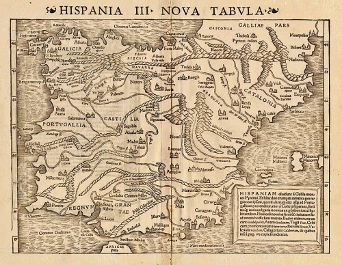 Iberian Peninsula (Spain & Portugal), by Sebastian Münster. 1542