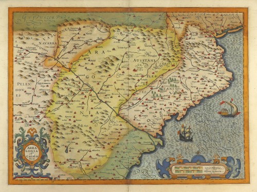 Old, antique map of Aragon & Catalunya, by Jodocus Hondius.