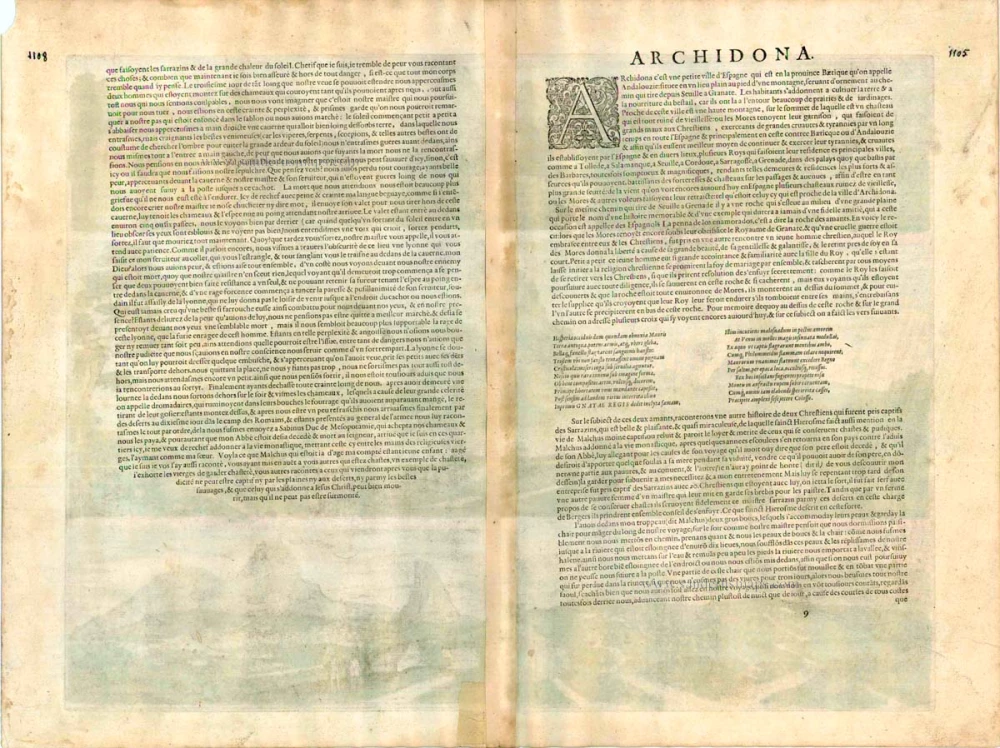 COMMENTARY BY BRAUN: "Archidona is a small town in the Spanish province of Baetica. On the mountain immediately beside the town lies an old ruined castle that the Moors occupied to the distinct disadvantage of the Christians, and from where they plagued the whole of Spain, and Baetica in particular, beyond all measure for many years to defend their tyranny. Along the otherwise level road from Seville to Granada can be seen a tall rock that has acquired its name from the eternal example of love and is called by Spaniards La Peña de los Enamorados, which means the boulder or rock of the lovers."