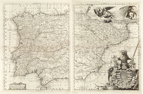 Iberian Peninsula (Spain & Portugal) by Vincenzo Coronelli. 1696