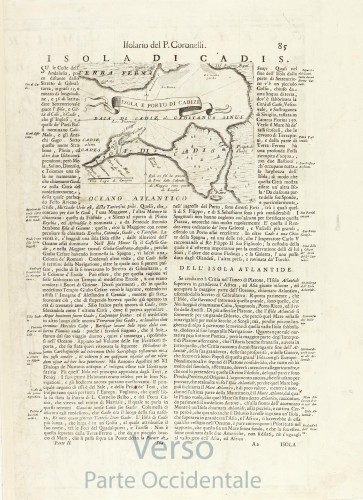 On the verso of the 'Parte Occidentale' a map of 'Isola e Porto di Cadize' (13 x 16.5 cm).