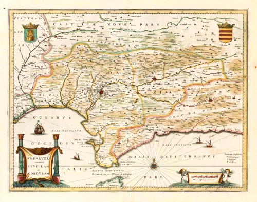 Old antique map of Andalucia, by Henricus Hondius. 1641