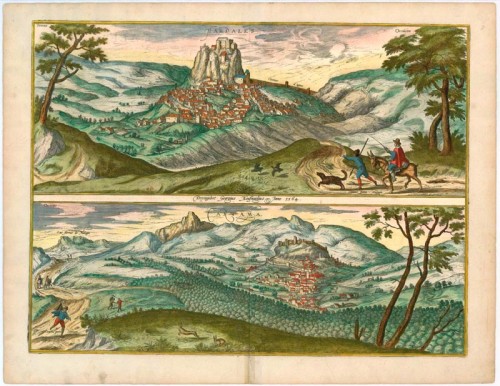 Old, antique bird’s-eye view plan of Ardales & Cartama, by Braun & Hogenberg.