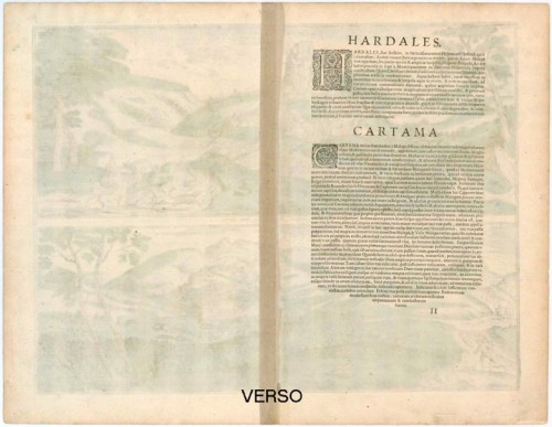 COMMENTARY BY BRAUN (on verso): "Cártama lies two miles from Malaga at the foot of a large mountain that runs all the way to the Mediterranean. It is a small town with a fortress and whose inhabitants live from arable farming and cattle breeding. In the vicinity, there are many oaks and trees with walnuts, which are used for ink, for dyeing leather and also in medicines. Capers also grow there in great numbers, which are collected by the common people, taken to the capital of Málaga and from there exported across the sea to the Netherlands and other countries."