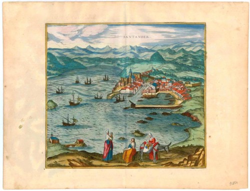 Old, antique bird’s-eye view of Santander by Braun & Hogenberg.