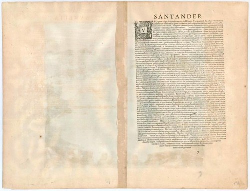 COMMENTARY BY BRAUN: "The city of Santander lies in Hispania Tarraconensi on the Atlantic. [...] On the left, the sea rises below the walls and is channelled into the city through a ford. They have built a wall with human artistry and thus created a harbour shaped like bent arms. In their language la grúa, a crane has been erected at the end of this wall, with which they can lift great loads."