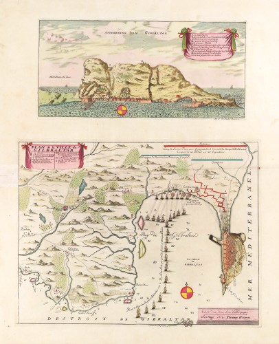 View and map of Gibraltar by Pierre Husson. c. 1709