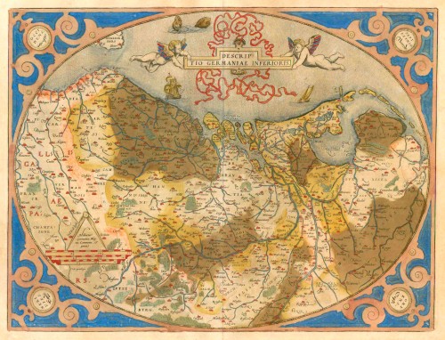 Old, antique map of the XVII Provinces by Abraham Ortelius.