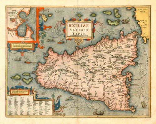 Ancient Sicily, by Abraham Ortelius. 1601