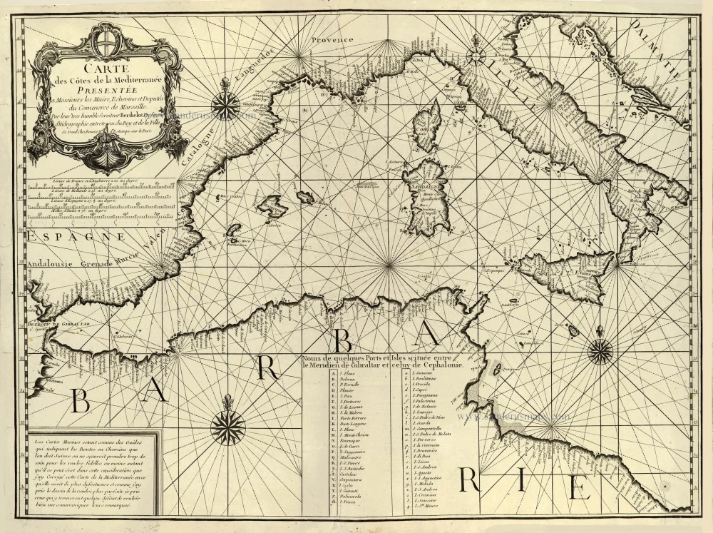 Western Mediterranean Sea by François Berthelot. c. 1700