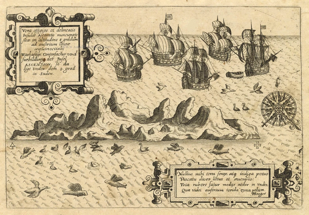 Old antique map of Ascension by Th. de Bry 1598-1613