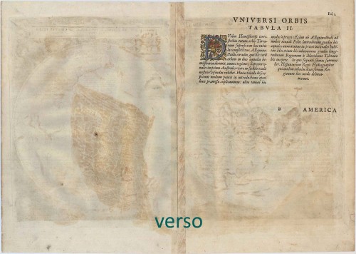 "The map is an interesting adaptation of Guillaume Postel's 1581 world map with some curious features reminiscent of the large anonymous gores probably published in Antwerp in about 1587. Both maps have the same configuration for the northern coasts - the Gulf of Merosro in North America, the placing of Ter. d Labrador and Nova Zembla, and the odd junction of the eastern part of Asia with one of the large arctic masses. Japan is only a few degrees from the west coast of America. In the delineation of South Africa and South America, further features strongly suggest a common source." (Shirley)