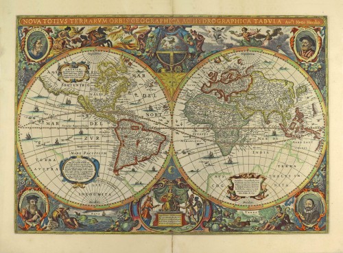 Nova Totius Terrarum Orbis Geographica ac Hydrographica Tabula. Auct: Henr: Hondio.