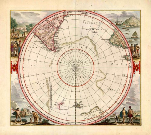 Old title "Polus Antarcticus" erased to make place for the discovery of New Zealand ('Nova Zeelandia detect 1642') and Australia ('Nova Hollandia detect Anno 1644').