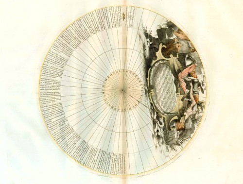 "In the early 1680s Vincenzo Coronelli constructed two vast globes - terrestrial and celestial - over fifteen feet in diameter for Louis XIV. These globes were drawn and painted by hand, whereas Coronelli's globes of 1688 were based on printed gores of which sets are extant in the British Library and Library of Congress. They represent a globe of 110 centimetres in diameter: one of the largest based on printed gores hitherto. The polar calottes were printed separately.