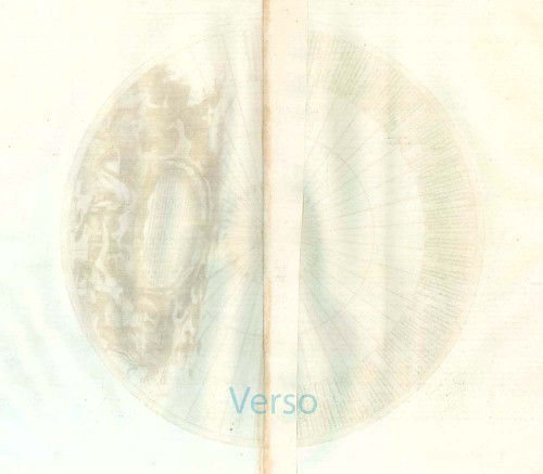 These gores and calottes were printed separately in 1688 for the construction of the globes. Some of the half-gores from the 1688 plates were reprinted in the 1696-97 edition of his Isolario and later in his Libro dei Globi with the dedication redated 1699. Pages from these works are thus available to collectors. According to Kershaw, the calottes appeared already in Coronelli's Corso Geografico, 1691-92.