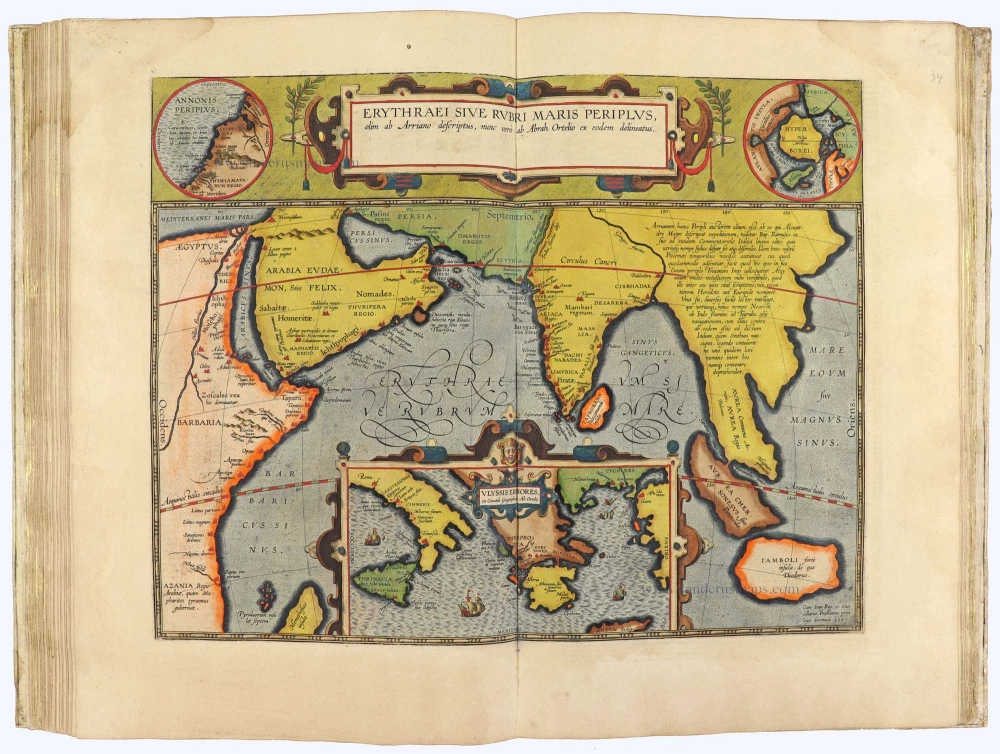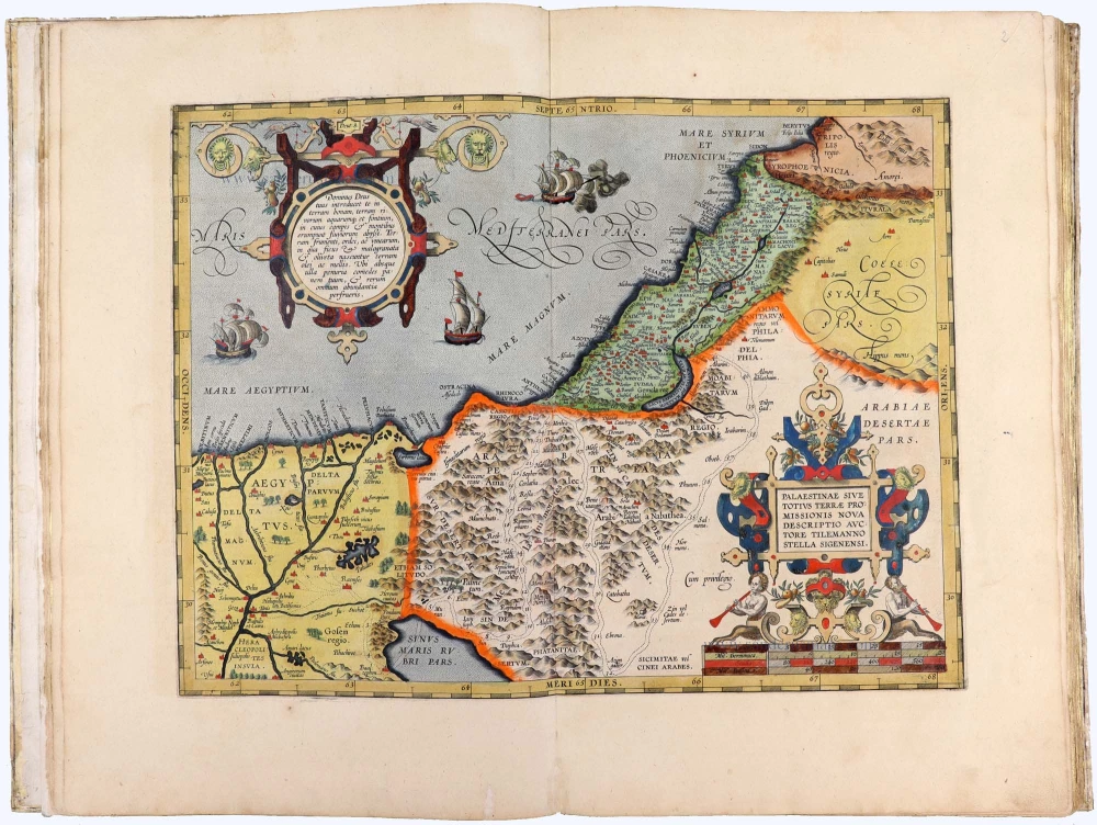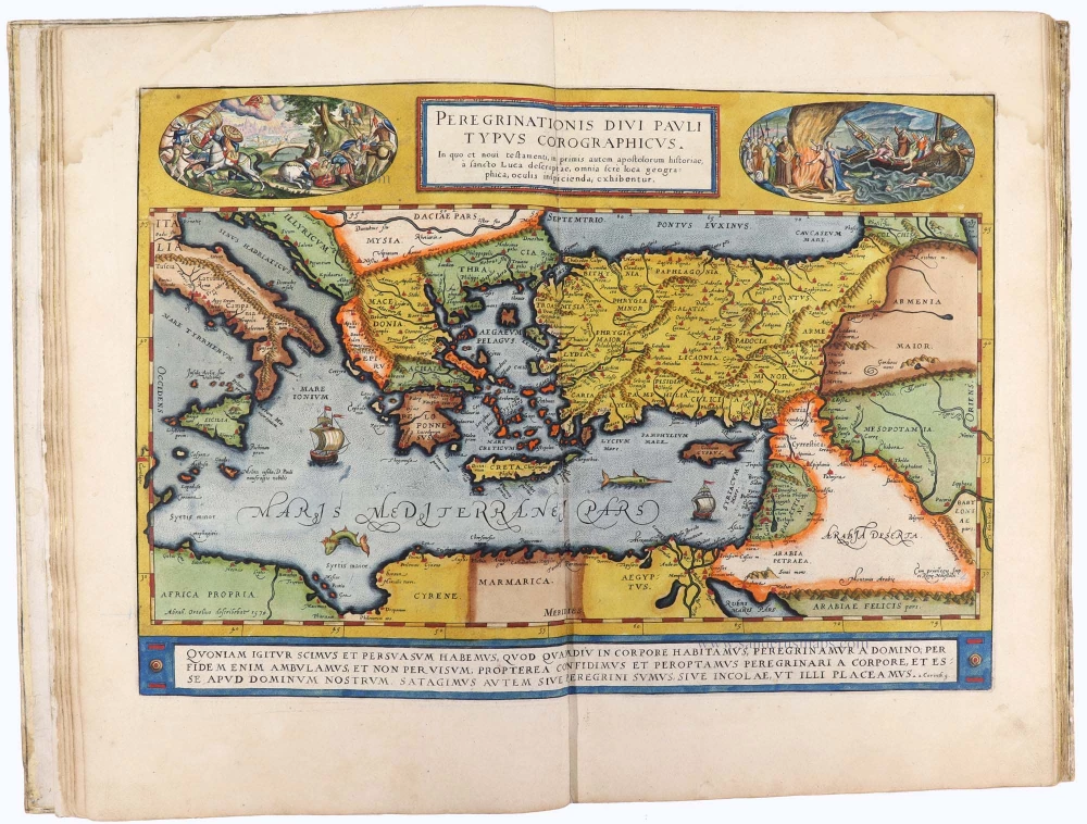 Later editions included Additamenta (additions), resulting in Ortelius' historical atlas, the Parergon, which is mainly bound together with the atlas. The Parergon can be considered a truly original work by Ortelius, who drew the maps based on his research.