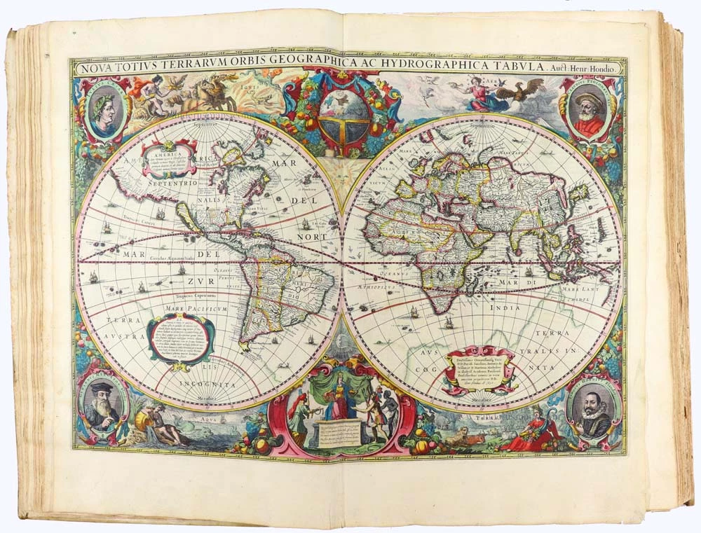 A fine example of the largest of the Mercator-Hondius atlases, attractively coloured by a contemporary hand.