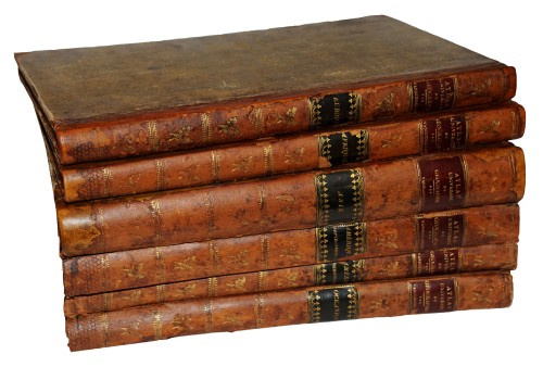 A complete set of the six volume Atlas Universel in original (restored) bindings. 389 lthographed maps including 7 index maps, one chart of comparative altitudes of mountains and 381maps all original handcoloured in outline: Vol 1 Europe: 29 maps, including 1bis and 1ter, all matching the index map; Vol 2 Asia: 111 maps including 103bis with engraved text; Vol 3 Africa: 60 maps including 1bis, 5bis and 18bis; Vol 4 North America: 77 maps including 57bis; Vol 5 South America: 44 maps including 4bis: Vol 6 Oceania: 60 maps, with wrong half title and title (= title of the 5th vol., South America)