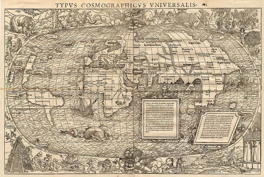 Shirley: "It seems most probable that the map itself is Münster's whereas the decor is more frequently attributed to Hans Holbein the Younger who was co-operating with several Basle publishers at the time.