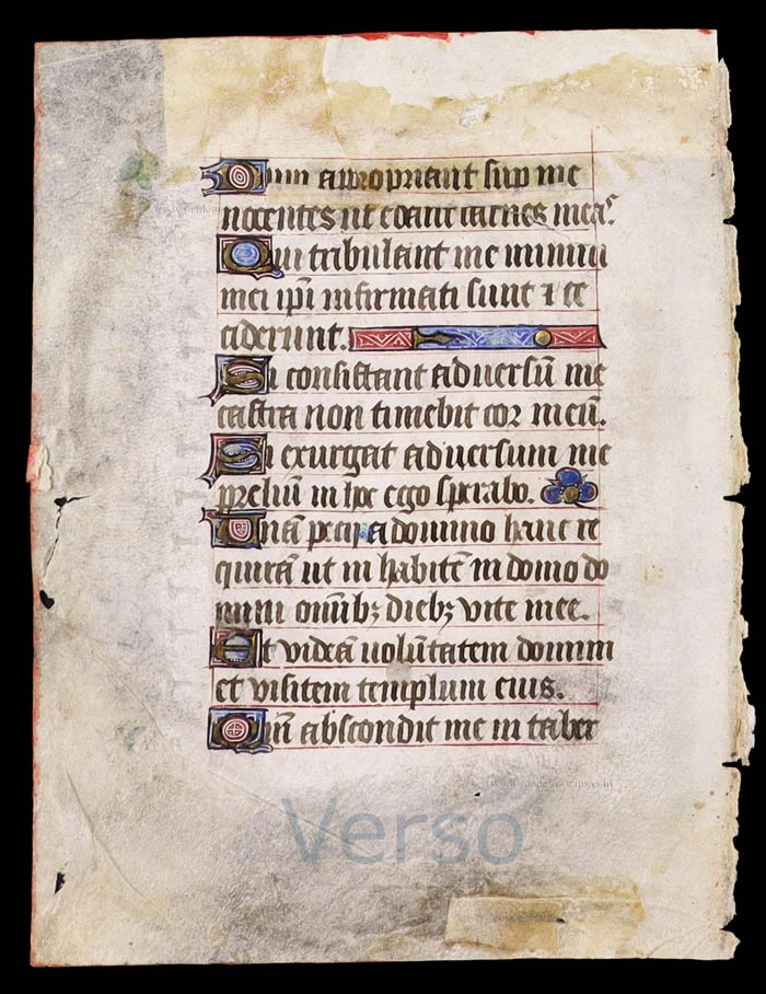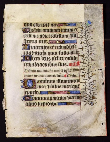 Manuscript on vellum, marginal thorn leave border, iinitials and line fillers lluminated in burnished gold.