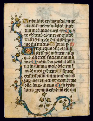 Leaf from a medieval book of hours. Tournai, 1335. c. 1335